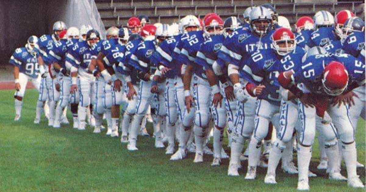 Era il 1987, il football italiano era ai massimi storici, l’Europa un giovane e speranzoso territorio di conquista da parte di una mai realmente partita WLAF e la FIAF era una federazione importante, prima di essere distrutta dalla solita politica fagocitatrice di risorse. Chi scrive si occupava dell’ufficio stampa e delle cronache tv del giovane e promettente fenomeno football, oltre a calcare (senza infamia né lode) il campo contro tutti coloro che avrebbe, poi, accompagnato nella più bella avventura azzurra del football nei 32 anni di storia di questo sport in Italia.